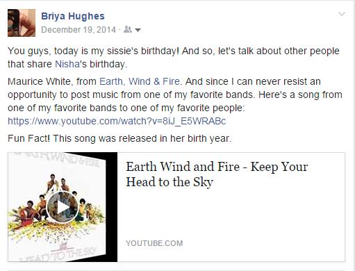 Did you guys know that Nisha shared a birthday with Maurice White, lead singer of Earth Wind & Fire?