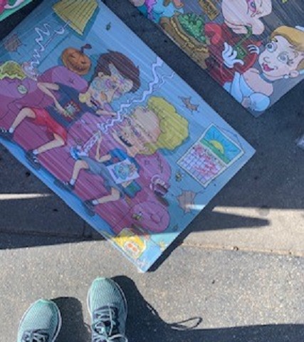 This was at the very end of my walk. The dude who created this came up to me, waves at the pictures on the panels behind me and hands me a pair of 3D glasses which I did not put on because THERE IS A POLYNOMIAL OUTSIDE SIR. YOU THINK I’M ‘BOUT TO PUT THESE COOTIE COVERED 3D PAPER GLASSES ON MY FACE?! I *DID* however, hold them out in front me to get a better look at this picture and you guys. Valerie Thomas did not create 3D for some jackass to create a 3D painting of Beavis & Butthead. (Or Snow White smoking a pipe while in compromising positions with the some dwarves. WHY are people like this?! It’s rhetorical. I know)