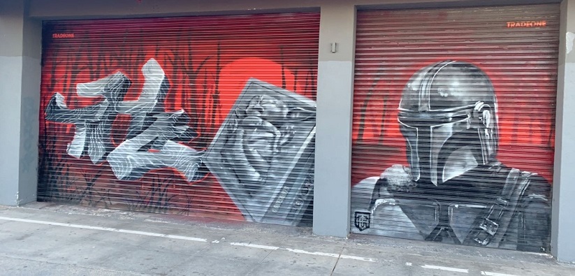 Since we’re in a panorama, I mostly do not go anywhere. Except work. And the market. And the beach. That is my one concession to being inside all the time. I get up VERY early and walk a few miles on the water. At 7am, it’s mostly just surfers, swimmers and a few other people. There’s a boardwalk, but there are definitely more people there than at the water. But this weekend, I got in my car and instead of going where I normally go, I ended up at Venice Beach. I think maybe I was just itching for a change in scenery and it’s been a long while since I’ve done some wandering that way. So I double masked, took out my phone and snapped some pictures of the street art I happened by.