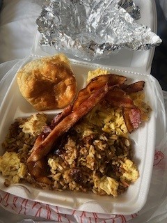 Breakfast rice, bacon and a biscuit so good I’d slap a Georgia white woman. TWICE. [this may be a terrible photo but when I tell you this breffis was fie?!]